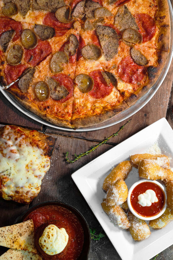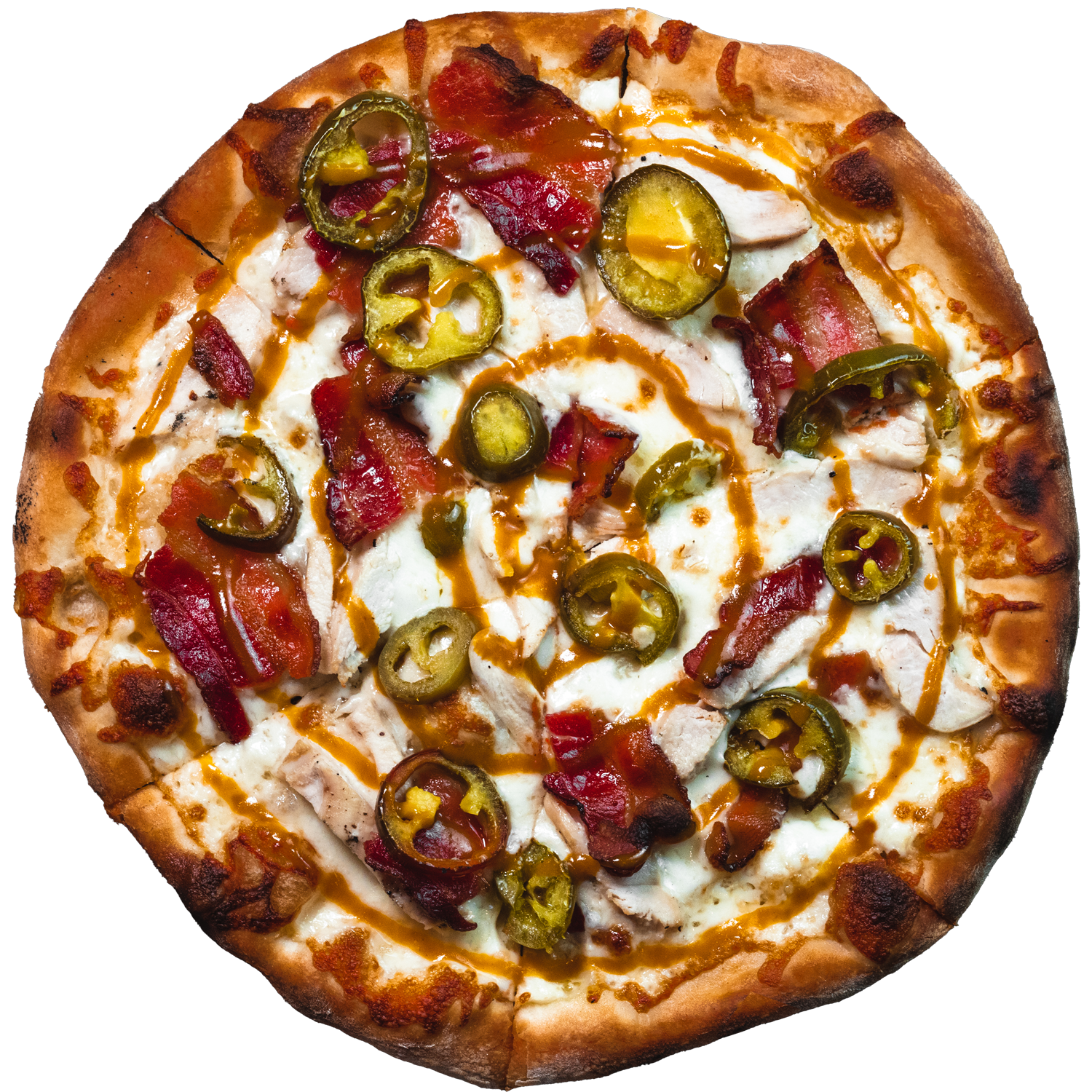 Our wood-fired pizza ovens cook your pie at over 800 degrees. This guarantees the perfect crispy dough and a slight amount of “char.” This method is similar to a traditional Neapolitan style with light toppings and sauce. If you want your pie to be “less crispy,” please let us know when you order!